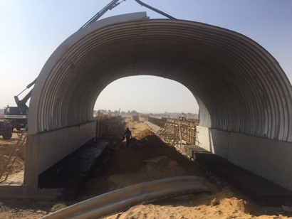 The project consists of four steel tunnels constructed under the Sharm El-Sheikh Ring Road. The tunnel is designed and manufactured from corrugated steel by ViaCon Poland and constructed by Geos for Trading and Contracting Company. Each tunnel has clear span of 12.0 m.