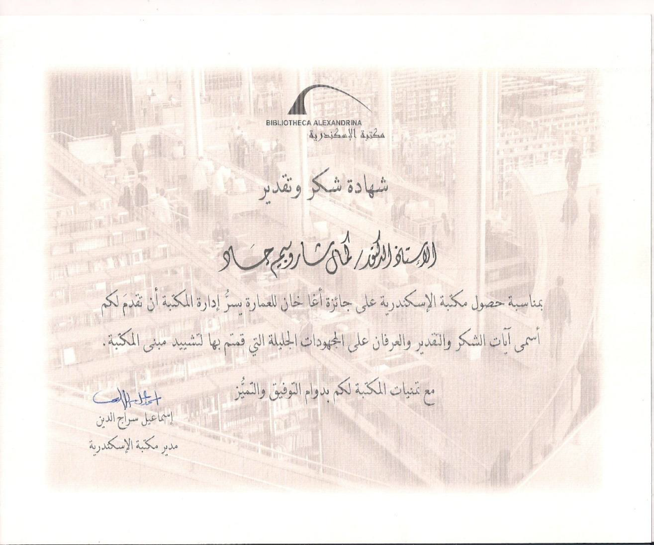 Dr. Kamal Sharobim was participated as one of the team who designed and supervised the New Alexandria Library. His work is concentrated on preparation of technical specifications for the project including structural elements and all civil works, design of corrosion monitoring and predicting system, review of concrete mix design and supervision of all concrete works.
