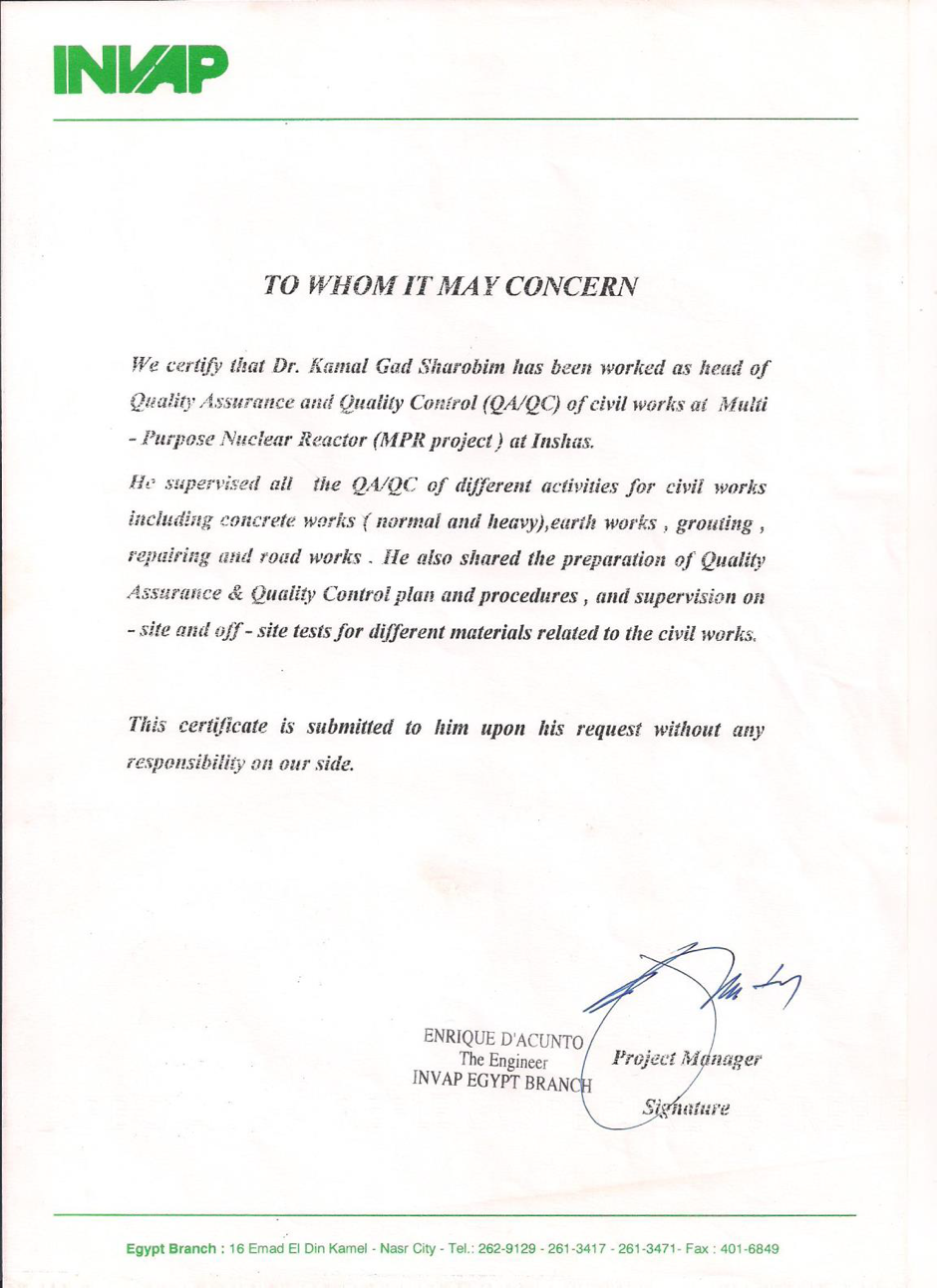 Dr Kamal Sharobim was participated in this project to Supervise the Quality control and Quality assurance of different activities for civil works including concrete works (normal and heavy), earth works, grouting, repairing and road works. He designed all concrete mixes for normal heavyweight concrete and supervised the on-site and off-site tests for different materials related to civil works.